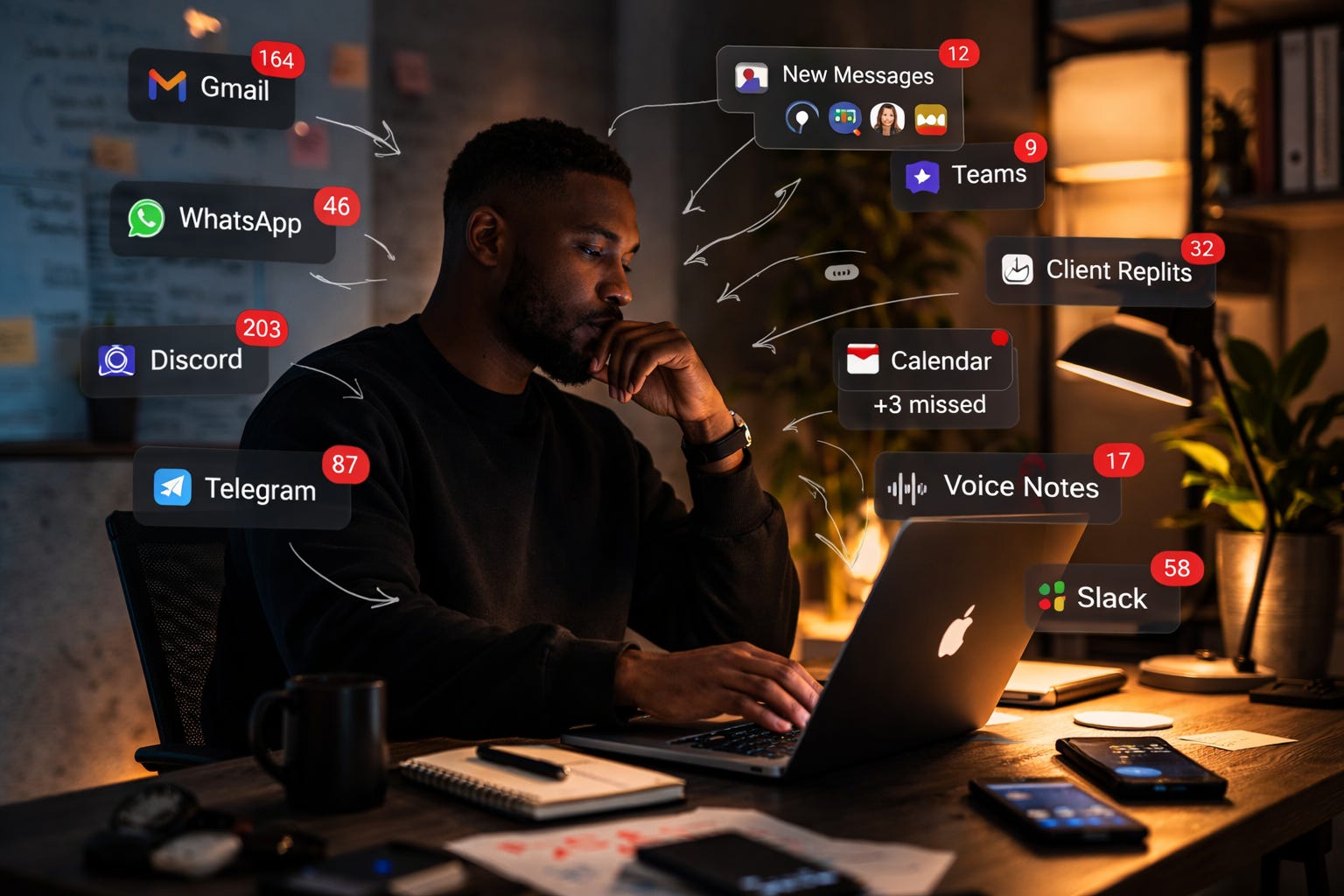 This morning I woke up to 46 WhatsApps, 9 Telegrams, 200 Discord, 40 LinkedIn messages, 160 emails across seven accounts… and 28 Slack messages.
